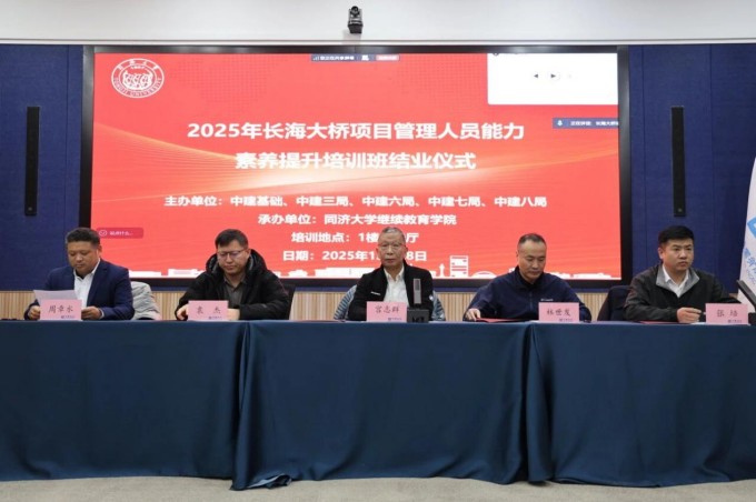 2025年12月24日至12月28日,“2025年长海大桥项目管理人员能力素养提升技术交流会”在大连市成功举办。本次交流会由辽宁中建基础设施投资建设有限公司、中建三局第三建设工程有限责任公司等多家单位主办,同济大学继续教育学院承办,旨在提升长海大桥项目管理人员的专业能力和综合素养,更好地应对项目建设过程中的各类挑战,切实推动长海大桥项目高质量建设。来自各个项目标段的技术、商务、安全条线负责人等50多人参加了会议。