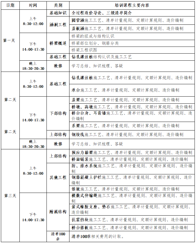 此次培训方式为专项实战式教学,以实际操作结合实例编制工程预算为主导,理论实践相辅相成提高学习效率。培训为期3.5天,以某高级桥涵图纸为实例,用2018版《公路工程建设项目概算预算编制办法》及广东相关补充规定、《公路工程标准施工招标文件》(2018版)、粤交基(2010)355号文、2018版《公路工程预算定额》(上、下册)、粤交基(2019)544号文为依据,结合纵横公路工程造价管理系统进行授课,过程中针对客户提出的工程量清单计量支付规则、公路营改增文件及在软件应用中存在的常见问题进行讲解分析。