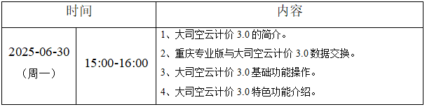 秉承为更好地服务公路工程造价人员、加强广大公路工程造价人员对于纵横公路工程造价管理软件的理解及应用,解决实际工作中出现的问题,推动公路工程造价工作的数字化、智慧化、标准化、规范化、精细化。应广大工程人员的要求,纵横重庆办于2025年6月30日开展关于“公路造价大司空系统数字化、智慧化免费直播课”线上培训班。