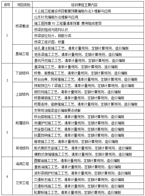 此次培训方式为专项实战式教学,以实际操作结合实例编制工程预算为主导,理论实践相辅相成提高学习效率。培训为期4天,培训期间课程以某项目桥梁图纸为实例,用2018版《公路工程建设项目概算预算编制办法》及山东相关补充规定、《公路工程标准施工招标文件》(2018版)、2018版《公路工程预算定额》(上、下册)为依据,结合纵横公路工程造价管理系统进行授课,培训过程中对清单100章总则(2018定额版)及在软件应用中存在的常见问题进行讲解分析。