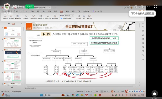 本次线上操作培训由四川办刘工通过“功能演示+案例实操”的方式,结合《公路工程基本建设项目概算预算编制办法》和四川省补充规定(川交函〔2024〕497号文件),系统地讲解了在大司空造价管控云计价中如何编制工程量清单预算,带着大家一起在软件中依次对新建项目文件、完善项目属性、费率文件选择、100-700章清单、工料机分析及单价调整、分摊调价、报表输出和项目文件导入导出等功能一一进行操作演示。