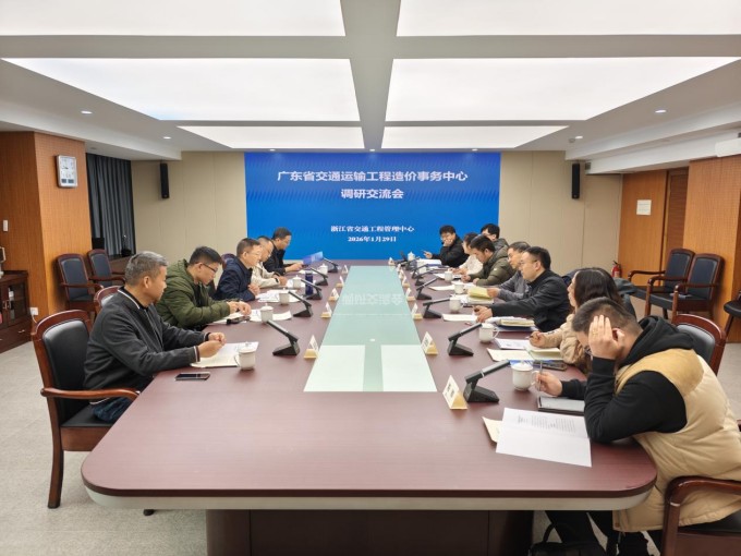 2026年1月19日,广东省交通运输工程造价事务中心副主任易万中带队到浙江省交通工程管理中心开展交通造价管理工作调研。浙江省交通工程管理中心副主任丁正祥及有关科室业务人员参加调研。