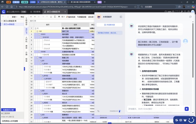 本次培训采用线上课程的方式进行。本次培训由浙江办周工结合《浙江省公路工程全过程阳光造价管理工作指引(试行)》浙交〔2025〕5 号文讲解了在大司空云计价软件中如何编制清单预算文件。和大家一起在软件中,从新建项目文件、完善项目属性,选择费率文件,建立工程量清单、选择定额、调整定额、工料机分析和单价计算、报表输出和设置等功能一一进行操作。