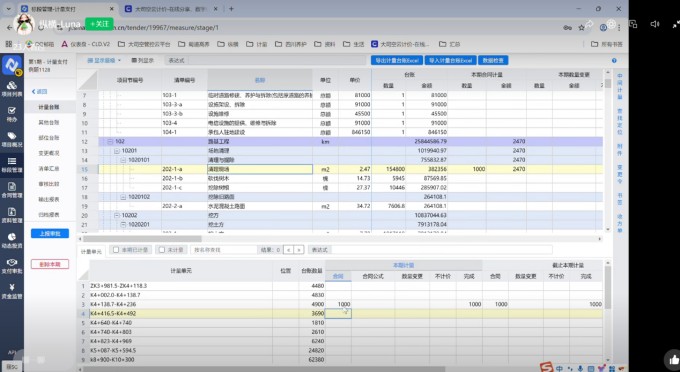 本次线上操作培训由四川办刘工通过“功能演示+案例实操”的方式,结合《公路工程基本建设项目概算预算编制办法》和四川省补充规定(川交函〔2024〕497号文件),系统地讲解了在大司空造价管控云计价中如何编制工程量清单预算,带着大家一起在软件中依次对新建项目文件、完善项目属性、费率文件选择、100-700章清单、工料机分析及单价调整、分摊调价、报表输出和项目文件导入导出等功能一一进行操作演示。